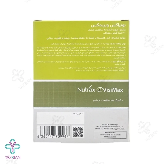 قرص تقویت بینایی ویزیمکس نوتراکس (Nutrax Visimax Tablets) برای حفظ سلامت چشم و تقویت بینایی کاربرد دارد. از دیگر ویژگی های این محصول این است که دارای خواص آنتی اکسیدانی موثر و قوی بوده و مانع از پیری چشم می شود.
