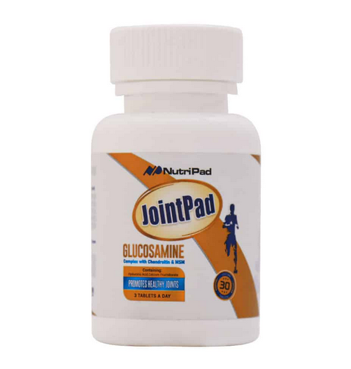 قرص تقویت مفاصل گلوکزامین 1500 جوینت پاد پاد جندی شاپور (Nutripad Jointpad tablets – 30 pcs) به واسطه ترکیبات موثری که دارد موجب تز بین رفتن التهاب، درد و تقویت سلامت استخوان ها و مفاصل می شود MSM موجود در این محصول دارای خاصیت ضد التهابی بوده و موجب کاهش درد و تورم می شود در افرادی که مبتلا به پوکی استخوان، استئوآرتریت و گرفتگی عضلات هستند گوگرد یکی از اجزای تشکیل دهنده ام اس ام بوده که موجب تولید کلاژن و کاهش التهاب و تورم مفاصل می شود هیالورونیک اسید موجود در این محصول از ترکیبات مایع بین مفصلی و یک ماده اصلی در بین رشته های الاستین و کلاژن می باشد که موجب حرکت بهتر و روان شدن و رفع خشکی صبحگاهی مفاصل می شود کلسیم نیز در این محصول موجود می باشد که موجب استحکام و سلامت استخوان ها و دندان ها شده و در عملکرد طبیعی قلب و سیستم عصبی و انعقاد خون نیز بسیار موثر می باشد و هم چنین موجب حفظ سلامت مفاصل و ترمیم مفصل آسیب دیده شده و علائم آرتروز را بهبود می بخشد سولفات کندرویتین موجود در این محصول در ساختار غضروف مفاصل موجود می باشد که برای بیماری های قلبی، استخوان ضعیف و کلسترول بالا مصرف می شود گلوکزامین به صورت طبیعی در غضروف بین مفصلی موجود بوده و باعث بهتر شدن حرکات مفاصل بوده و برای کاهش دردهای مفصلی و استخوان نیز مورد استفاده قرار می گیرد.