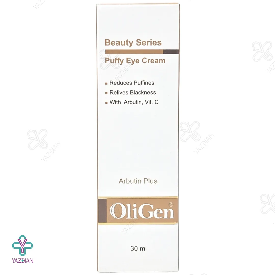 کرم ضد پف و تیرگی دور چشم بیوتی سری الی ژن (Oligen Beauty Series Puffy Eys Cream 30 ml) با بهره گیری از ترکیباتی مفید و مؤثر در فرمولاسیون خود می تواند تیرگی ها و پف ناحیه اطراف چشم را کاهش دهد و به روشنی، درخشندگی، و استحکام پوست این ناحیه بیفزاید.
