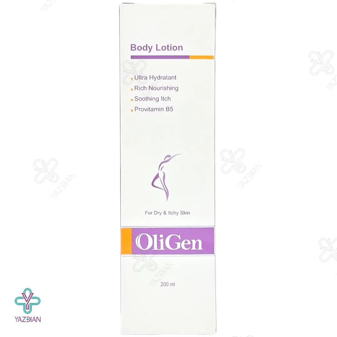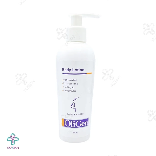 لوسیون بدن الی ژن (Oligen Body Lotion 200 ml) با دارا بودن ترکیبات مغذی و مفید نظیر آلانتوئین، توکوفرول، عصاره گل همیشه بهار، آلوئه ورا، شیرین بیان و روغن بادام شیرین در فرمولاسیون خود می تواند رطوبت رسانی و تغذیه پوست را به خوبی انجام داده و ضمن تسکین التهابات و خارش های پوستی، باعث نرمی و لطافت هر چه بیشتر پوست شود.