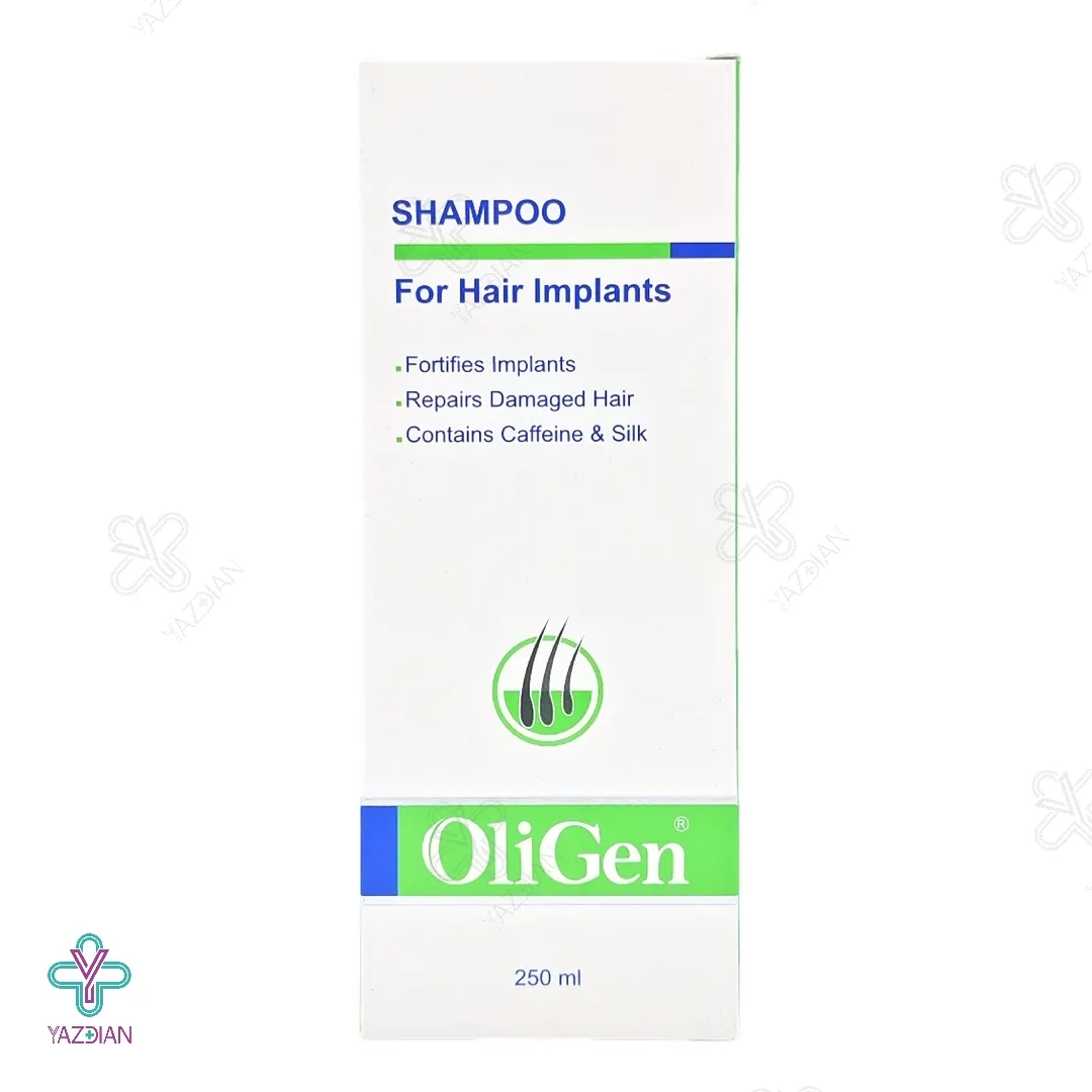 شامپو موهای کاشته شده الی ژن (Oligen Repairs Hair Implants Shampoo With Caffein 250 ml) با دارا بودن کافئین، کراتین هیدرولیز شده، روغن هسته انگور، عصاره های رزماری و بابونه، ویتامین های B3 و B5 و دیگر ترکیبات مفید و مؤثر در فرمولاسیون خود می تواند ریشه موهای تازه پیوند خورده را به خوبی تقویت کرده و باعث تحریک رشد آن ها شود.