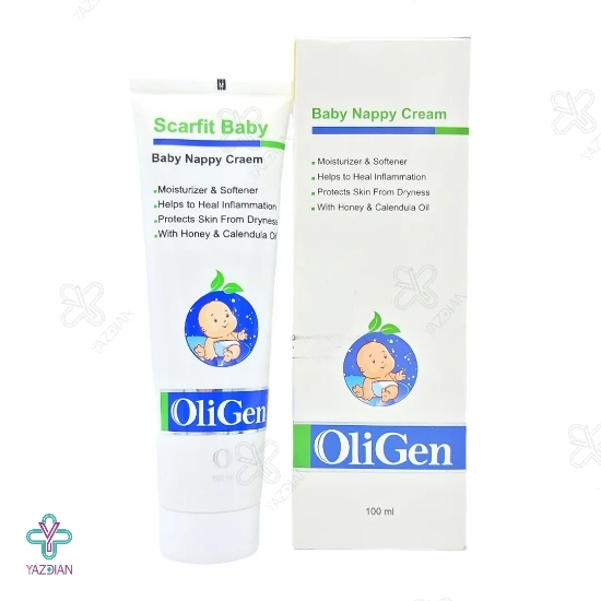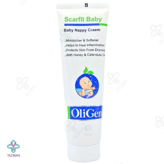 کرم سوختگی پا کودکان اسکارفیت الی ژن (Oligen Scarfit Baby Foot Cream 100 ml) با دارا بودن عسل و روغن گل همیشه بهار در فرمولاسیون خود می تواند رطوبت مورد نیاز پوست تحریک شده و آسیب دیده کودکان را تأمین نموده و قرمزی ها و التهابات ناحیه پوشک کودک را به خوبی ترمیم و رفع نماید.