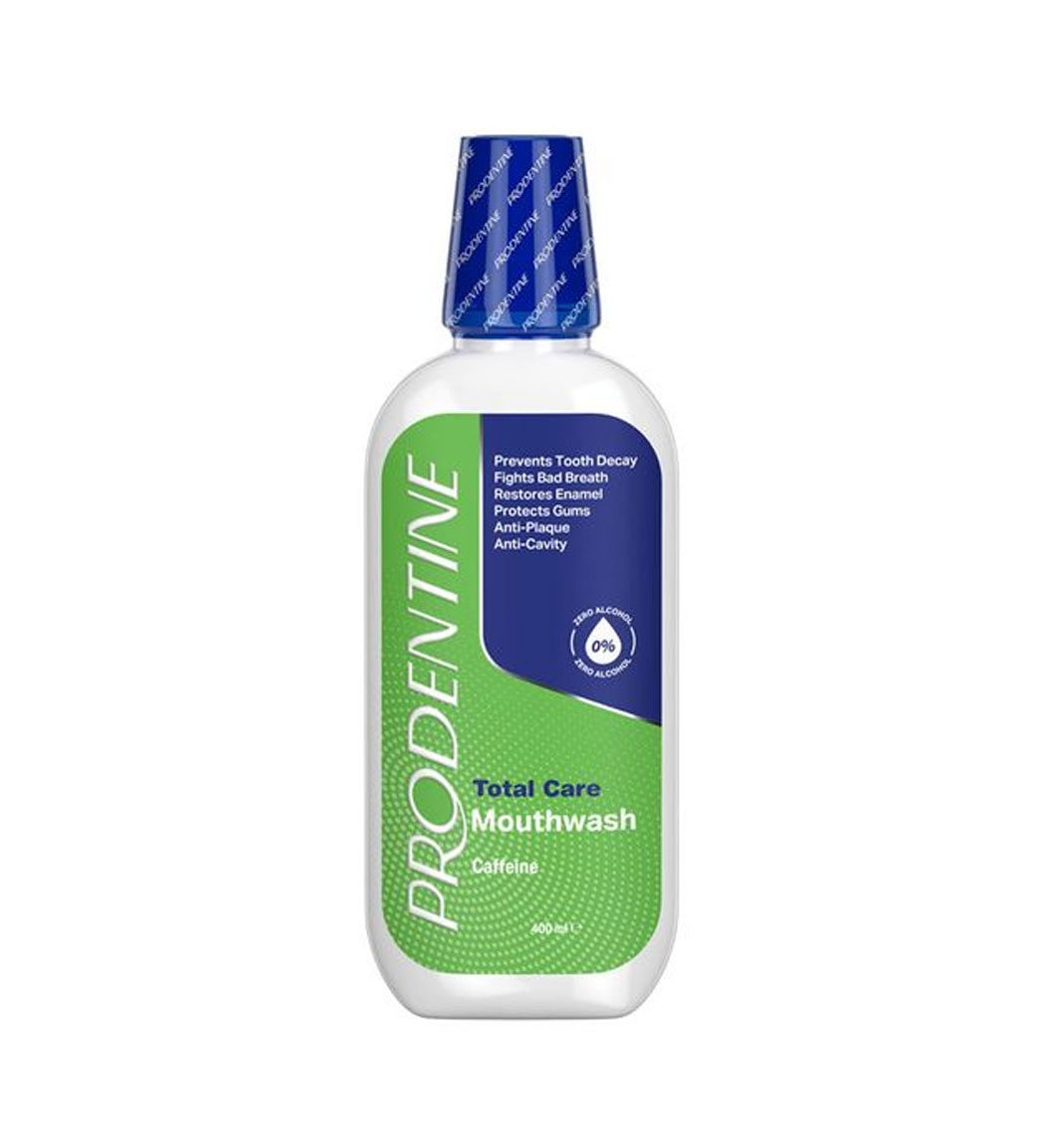 رسیدگی به بهداشت دهان ودندان بسیار بر سلامتی و تندرستی تاثیر گذار می باشد در صورتی که راه کار اصولی برای حفظ سلامت دندان و دهان به کار نبرید نه تنها موجب آسیب به لثه و دندان شده بلکه احتمال ابتلا به بیماری قلبی، سرطان و دیابت را نیز به همراه دارد در کنار مسواک زدن استفاده از یک دهان شویه مناسب برای سلامت و محافظت از دهان و دندان بسیار موثر می باشد، دهان شویه ها سبب کاهش درد وناراحتی های دهان شده و رطوبت کافی برای بافت های دهان را تامین می کند یکی از راه هایی که بسیار تاثیر گذار است در رفع پلاک دندان دهانشویه می باشد ، دهانشویه کامل حاوی کافئین پرودنتین (Prodentine complete caffeine – containing mouthwash – 400 ml) یک محصول مناسب جهت تقویت مینای دندان می باشد و هم چنین به استحکام آن ها نیز کمک می کند، این محصول با خواص ضد التهابی که دارد مانع از التهاب دندان و لثه شده و از پوسیدگی دندان نیز جلوگیری می کند، دهانشویه پرودنتین دارای فرمولاسیون منحصر به فردی می باشد که موجب طراوت و تازگی در تنفس شده وبه دنبال آن احساس افزایش انرژی و هوشیاری در فرد ایجاد می شود، در این محصول از الکل استفاده نشده است، بنابراین در زمان استفاده از آن هیچ طعم ناخوشایند و خشکی در دهان ایجاد نمی شود، دهانشویه کافئین پرودنتین با خاصیت آنتی باکتریالی خود موجب از بین رفتن باکتری مضر شده و بوی بد دهان ناشی از این باکتری ها را نیز رفع می کند.