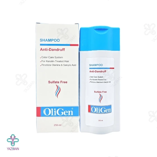 شامپو بدون سولفات ضد شوره بانوان الی ژن (Oligen Anti Dandruff Shampoo For Women 250 ml) با دارا بودن ترکیبات مؤثره نظیر پیروکتون الامین، اسید سالیسیلک و منتول در کنار عصاره پروتئین هیدرولیز شده ابریشم و کراتین هیدرولیز شده، می تواند رطوبت فوق العاده ای به موها بخشیده و ضمن برطرف نمودن شوره سر و ترمیم و بازسازی پوست سر و موهای آسیب دیده، شفافیت و حالت دهندگی موها را نیز افزایش دهد.