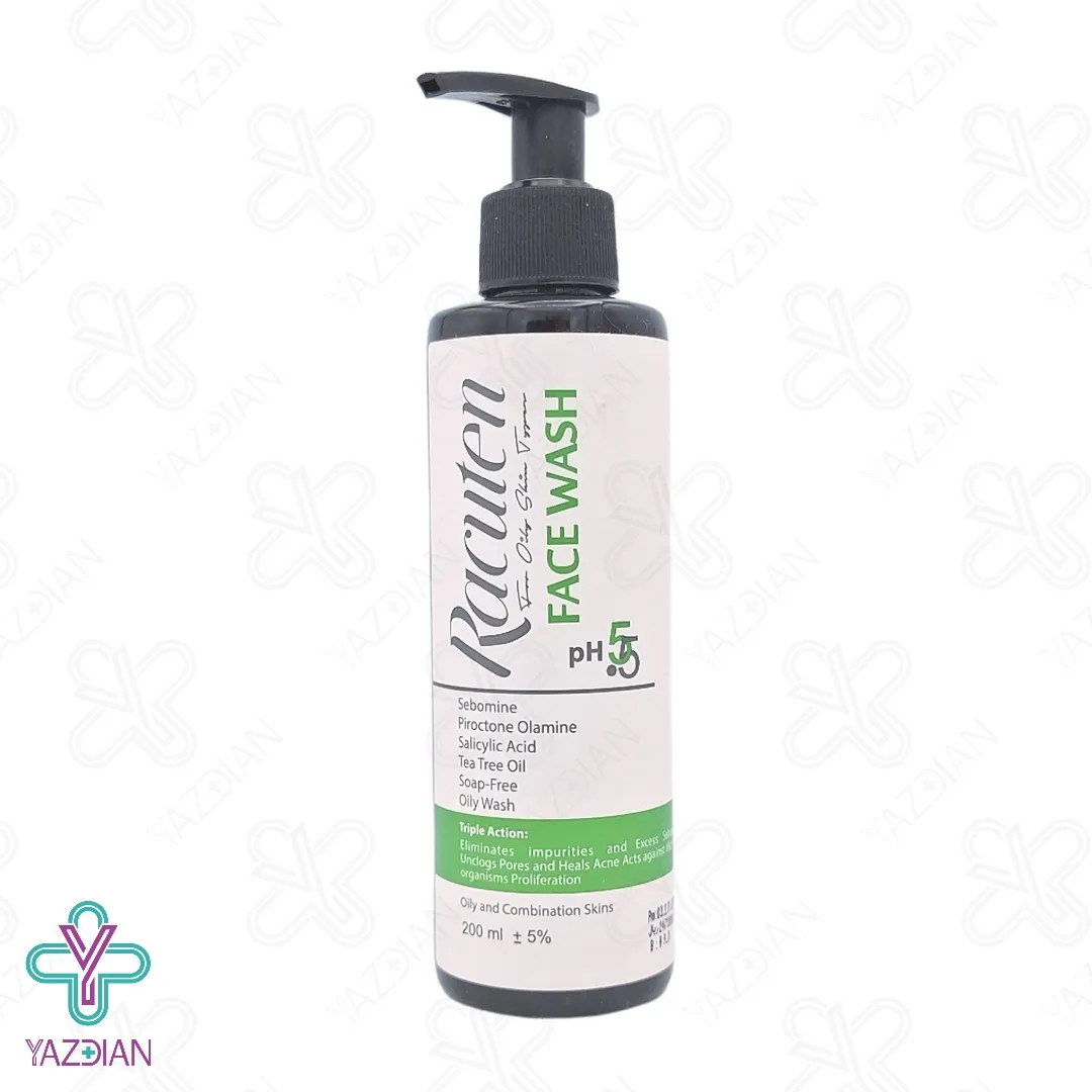 ژل شستشوی صورت چرب راکوتن (Racuten Facial Cleansing Gel For Oily Skin – 200 ml) انواع آلودگی ها، چربی اضافه و مواد آرایشی را از روی پوست پاک می کند، از ویژگی های این محصول این است که پوست را آب رسانی و سبب حفظ رطوبت در آن شده و در نتیجه از ایجاد حس خشکی و کشیدگی در پوست جلوگیری می کند، این ژل هم چنین به دلیل داشتن خواص آنتی اکسیدانی موثر و قوی در خود از پوست در مقابل رادیکال های آزاد حفاظت می کند، از دیگر ویژگی های مهم این محصول این است که مناسب استفاده برای پوست های چرب و مختلط بوده و PH این ژل با پوست سازگار بوده و به دلیل آن که در ترکیبات این ژل از شوینده های صابونی استفاده نشده است باعث به وجود آمدن حساسیت در پوست نمی شود، این محصول میزان تولید چربی در پوست را تنظیم کرده و نیز از رشد میکروب های سطح پوست پیشگیری می کند، روغن برگ درخت چای از ترکیبات به کار رفته در این ژل است که علاوه بر کنترل و جلوگیری از به وجود آمدن جوش، در بهبود آن هم بسیار تاثیرگذار است و هم چنین مانع از جذب آلودگی به وسیله ی پوست می شود، وجود سالیسیلیک اسید نیز در ترکیبات این محصول به عنوان یک لایه بردار ملایم عمل کرده و به پوست آسیبی نمی زند.