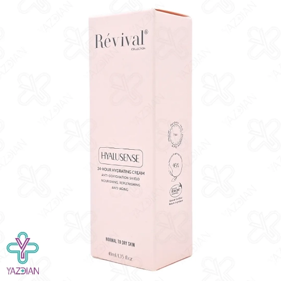 خشکی پوست یک عارضه شایع می باشد که در اثر کمبود رطوبت در لایه خارجی پوست ایجاد می شود که موجب بروز علائمی مانند پوسته پوسته شدن، خارش و احساس سفتی می شود استفاده از محصولات مراقبتی پوست که در کاهش و رفع خشکی می شود در درمان این مشکل بسیار موثر می باشد، کرم آبرسان 3 در 1 پوست نرمال و خشک رویوال (Revival Hyalusense Hydrating Cream for Normal to Dry Skin – 40 ml) پوست را آبرسانی و سبب حفظ رطوبت در آن می شود، از دیگر ویژگی های این محصول این است که مناسب استفاده برای پوست های نرمال و خشک بوده و در بهبود پوست افرادی که به علت خشکی بیش از اندازه دچار کشیدگی و زبری می شوند بسیار تاثیرگذار است، این کرم دارای ماندگاری 24 ساعته بوده و هم چنین سد دفاعی پوست را تقویت می کند، این محصول از به وجود آمدن چین و چروک های پوستی و پیری زودرس جلوگیری و آن را تغذیه می کند، این کرم به ایجاد نرمی و لطافت در پوست بسیار کمک کرده و نیز از التهاب پوست جلوگیری می کند، نیاسین آمید از ترکیبات به کار رفته در این محصول بوده که در درمان رنگ پوست تاثیرگذار است، شی باتر، اسید هیالورونیک و آلانتوئین از دیگر ترکیبات موجود در این کرم هستند که باعث آب رسانی و روشن شدن پوست می شوند.