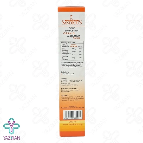 شربت کلسیم منیزیم زینک سندروس (Sandrous calcium magnesium zinc syrup – 200 ml) یک محصول مناسب جهت کمک به حفظ سلامت استخوان ها می باشد،این محصول برای کودکان 2 سال به بالا قابل استفاده بوده و دارای ترکیبات موثری مانند ویتامین د3، منیزیم، روی و کلسیم است که سبب جذب کلسیم شده و به استحکام استخوان ها و دندان ها کمک می کند.