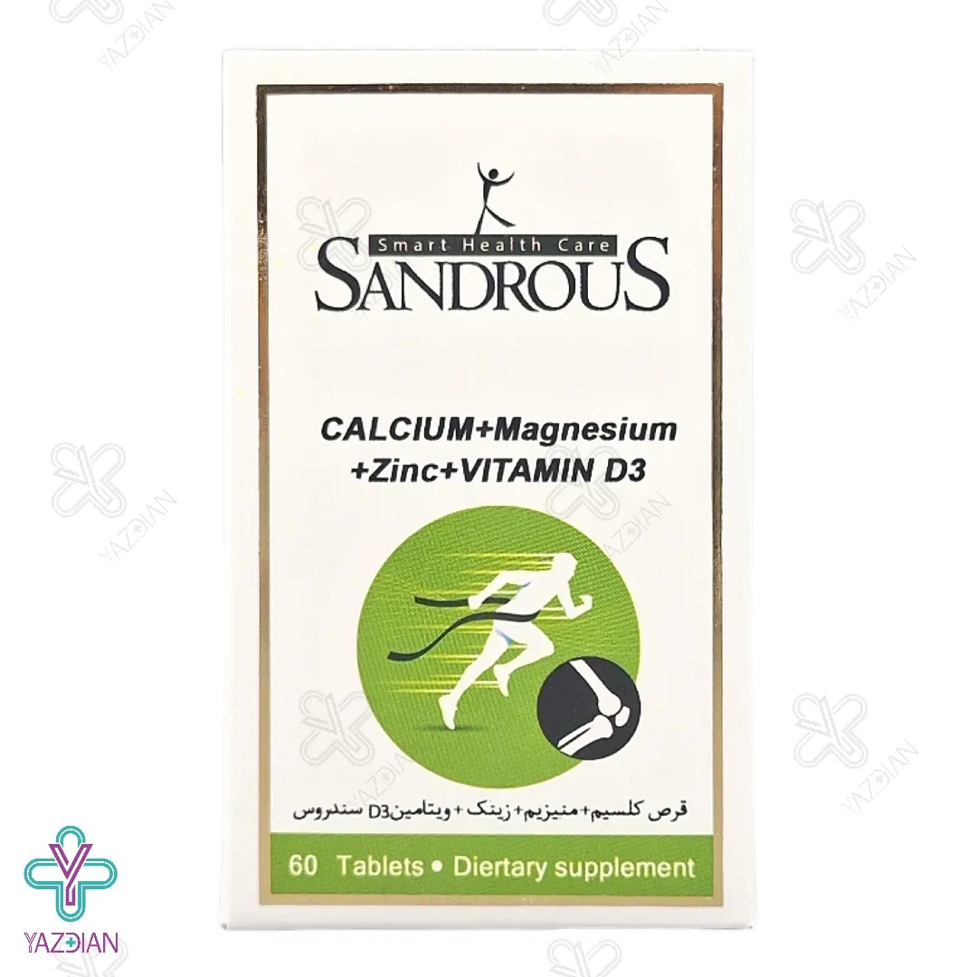قرص کلسیم منیزیم زینک د3 سندروس (Sandrous Calcium Magnesium Zinc Vitamin D3 60 Tablets) سبب محکم تر شدن استخوان ها و دندان ها می شود. این محصول با فراهم کردن ریز مغذی های تاثیر گذار باعث رشد و کامل شدن استخوان های کودکان و نوجوانان می شود.