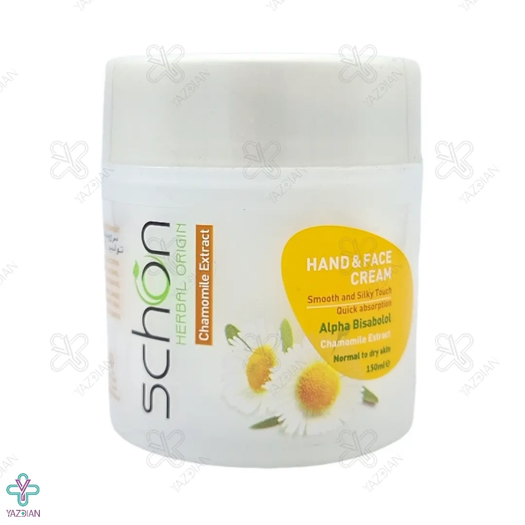 برند شون جهت پاسخگویی به سلیقه های مختلف، اقدام به تهیه کرم های دست و صورت شون با عصاره های گیاهی متنوع نموده است. کرم نرم کننده دست و صورت بابونه شون (Schon Chamomile Cream 150ml)، بابهره گیری از فرمولاسیونی فوق العاده جزو یکی از مرغوب ترین کرم های نرم کننده به حساب می آید.
