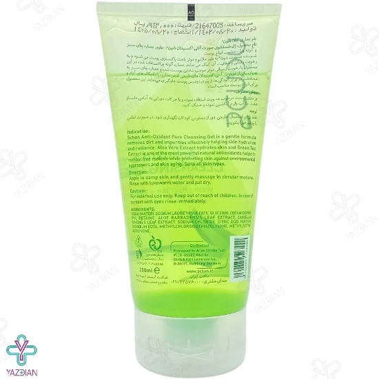 ژل شستشوی صورت آلوئه ورا و چای سبز شون مناسب انواع پوست (Schon Face Cleansing Gel With Green Tea & Aloevera 150 ml) با دارا بودن ترکیبات گیاهی و مؤثر می تواند مانع از بروز چین و چروک های پوستی شده و پیری پوست را به تأخیر بیاندازد. این ژل همچنین از خاصیت ضد التهابی، التیام بخشی و ضد میکروبی برخوردار می باشد.