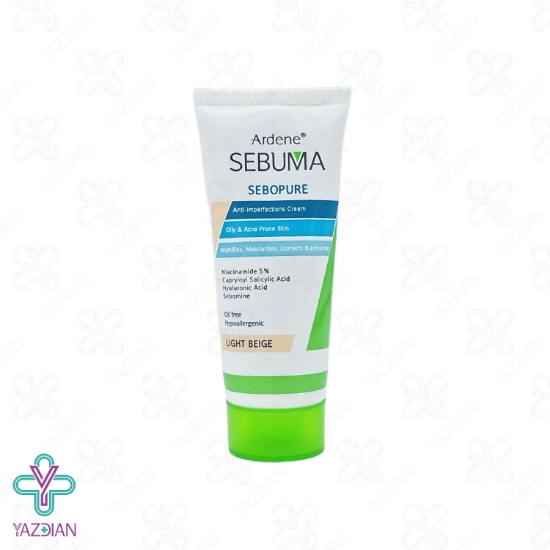 کرم ضد جوش رنگی آردن سبوما - بژ روشن (Sebopure Anti Imperfections Cream For Oily And Acne Prone Skin) کاور بسیار بالا و نچرال به رنگ بژ طبیعی داشته و کلیه عیوب پوستی از جمله جای جوش و آکنه و تیرگی های پوستی را می پوشاند. این محصول به هیچ وجه پوست را مات نکرده و باعث ایجاد براقی نمی شود. ضمنا با کنترل ترشحات غدد چربی و جمع کردن منافذ باز پوستی، کومدون های سر سیاه و سر سفید را از بین برد و مانع از بروز مجدد آن ها می شود. ضمنا خاصیت آنتی باکتریالی نیز دارد. این محصول فاقد چربی است و کاملا مناسب پوست چرب، جوشدار و آکنه ای می باشد.