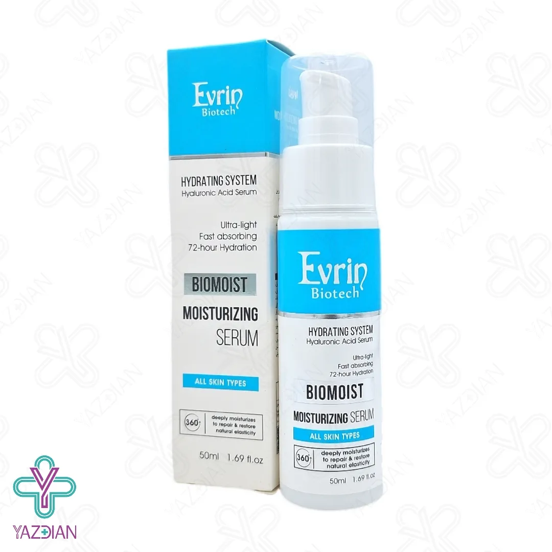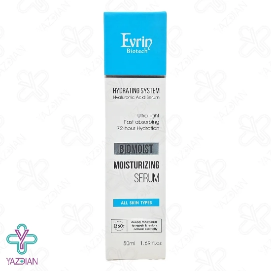 سرم مرطوب کننده صورت خشک بایومویست اورین - 50 میلی لیتر (Serum Moisturizing Evrin 50ml) با آبرسانی عمقی و طولانی مدت (72 ساعته) میزان نرمی و لطافت پوست را دو چندان می کند. این محصول با فرمولاسیون ویژه خود، شادابی و طراوت پوست شما را دو چندان کرده و سبب روشنی و جوانی آن می شود. بعلاوه از بروز قرمزی، التهاب و تحریکات پوستی ممانعت کرده و از حساسیت های پوستی جلوگیری می کند. این سرم قابل استفاده برای پوست صورت و گردن می باشد و برای تمامی پوست ها قابل استفاده است.