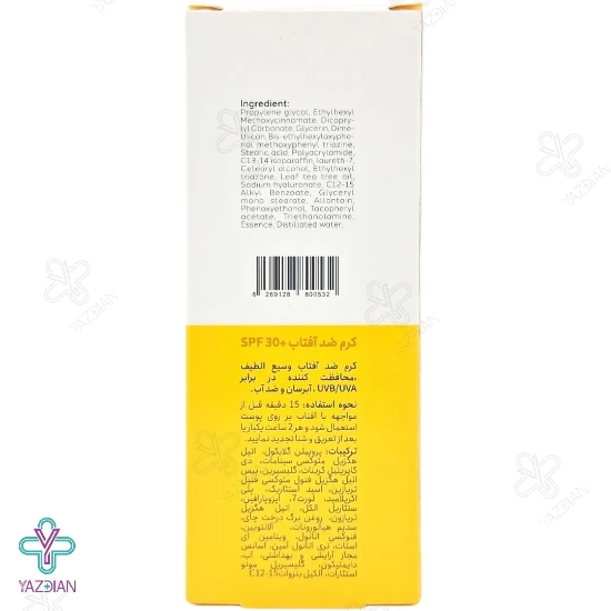 وجود ویتامین E در این محصول به دلیل داشتن خواص آنتی اکسیدانی موثر و قوی در حفاظت از پوست در مقابل آسیب رادیکال های آزاد نیز بسیار تاثیر گذار بوده و هم چنین با تقویت سد دفاعی پوست سلول های آسیب دیده را ترمیم می کند. اتیل هگزیل نیز از دیگر ترکیبات به کار رفته در این کرم ضد آفتاب است که مانند یک فیلتر عمل کرده و از رسیدن اشعه های مضر UVB به پوست پیشگیری می کند. روغن برگ درخت چای هم از ایجاد التهاب جلوگیری کرده و باعث تسکین آفتاب سوختگی می شود. سدیم هیالورونات نیز با آب رسانی باعث جوان سازی پوست می شود.