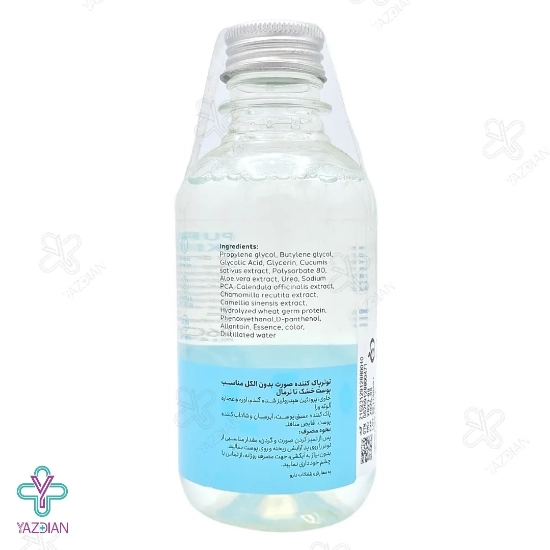 پروتئین هیدرولیز شده ی گندم از ترکیبات به کار رفته در این محصول است که غنی از ویتامین های E و C بوده و با داشتن خواص آنتی اکسیدانی موثر سبب لطافت پوست می شود. اوره از دیگر ترکیبات موجود در این تونر است که باعث احیا و باز سازی پوست شده و با حفظ رطوبت در آن خشکی و قرمزی پوست را کم و سبب نرمی آن می شود. وجود عصاره ی بابونه در این محصول نیز التهاب و قرمزی ایجاد شده به دلیل جوش را برطرف کرده و باعث یک نواختی رنگ پوست، آب رسانی و درخشش پوست می شود.