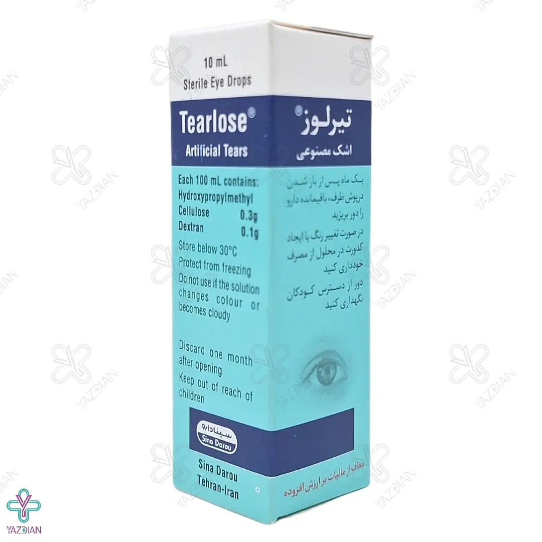 قطره اشک مصنوعی تیرلوز سینا دارو - 10 میلی لیتر ( برای بهبود و جلوگیری از سوزش، درد و خشکی چشم مورد استفاده قرار میگیرد، همچنین قطره اشک مصنوعی تیرلوز به عنوان یک محافظ در برابر عوامل تحریک کننده چشم مانند باد و یا آفتاب عمل میکند. قطره اشک مصنوعی تیرلوز با تثبیت و ضخیم کردن لایه اشکی پری کورنیال و عقب انداختن زمان تجزیه لایه اشکی در اختلال خشکی چشم، کمک بسیاری میکند و باعث افزایش رطوبت در قرنیه میشود. قطره اشک مصنوعی تیرلوز حاوی مواد ویسکوز کننده میباشد که مدت زمان تماس قطره با چشم را افزایش میدهد. قطره تیرلوز در شرایطی که کمبود ترشح اشک میباشد، برای بهبود خشکی و تحریک چشم در بیماریهایی مثل التهابات خشکی قرنیه مورد استفاده قرار میگیرد.