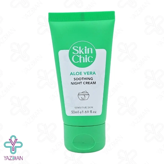 کرم مرطوب کننده شب آلوئه ورا اسکین شیک - 50 میلی لیتر (Skin Chic Aloe Vera Soothing Night Cream - 50ml) یک مرطوب کننده پوست فوق العاده می باشد که بدلیل بکارگیری مواد اولیه با کیفیت، ماندگاری بالایی نیز روی پوست دارد. این کرم برای استفاده در شب تهیه شده است که پوست را تقویت و تغذیه رسانی کرده و سبب ریکاوری و بازسازی آسیب دیدگی های پوستی در شب می شود.