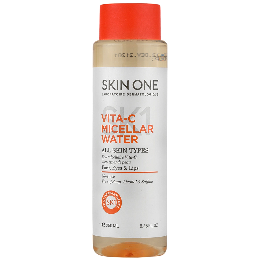محلول پاک کننده صورت حاوی آنتی اکسیدان اسکین وان - 250 میلی لیتر (Skin One Vita-C Micellar Water 250ml) با بهره گیری از فرمولاسیون ویژه و اصولی، آرایش صورت، چشم ها و لب ها را بطور کامل پاکسازی کرده، بدون اینکه باعث ایجاد خشکی، تحریک و حساسیت شود. بهره گیری از ویتامین سی در فرمولاسیون این میسلار واتر باعث شده است تا خاصیت آنتی اکسیدانی پیدا کند و پوست در برابر رادیکال های آزاد ایمن سازد. بعلاوه از بین برنده چین و چروک های پوستی است و از پیری زودرس پوست جلوگیری می کند. در صورت استفاده مداوم و منظم از این محصول، شاهد چشمگیر شادابی، طراوت و جوانی پوست خود خواهید شد. ویتامین سی همچنین خاصیت شفاف و روشن کنندگی نیز داشته و ظاهر پوست را صاف و یکنواخت می سازد.