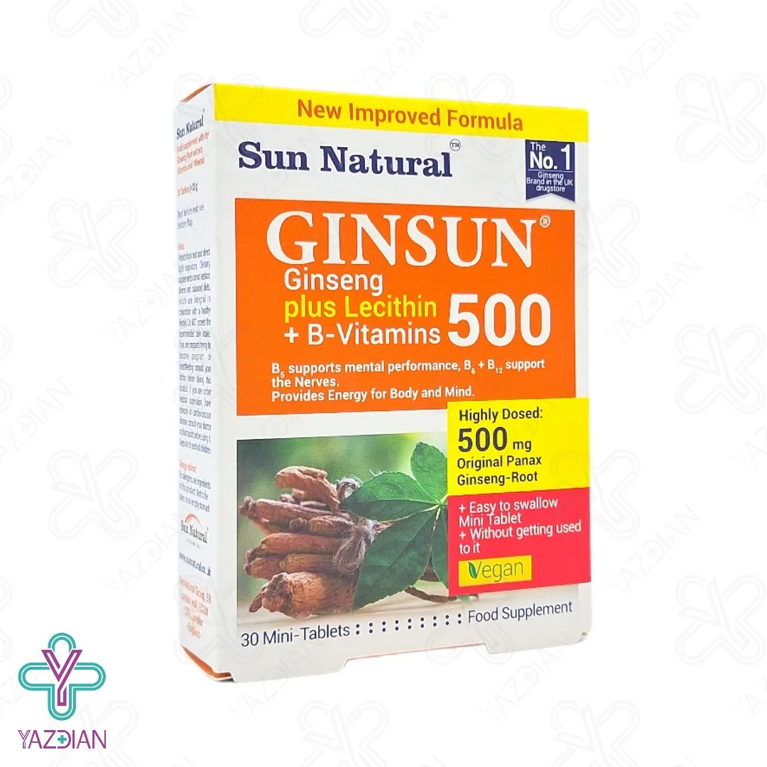 قرص جینسان سان نچرال (Sun Nutural Ginsun Tablets – 30 pcs) یک مکمل مناسب جهت تامین ویتامین های مورد نیاز بدن می باشد، این محصول با ترکیبات موثری که دارد سبب حفظ سلامت عمومی بدن می شود، استفاده روزانه از این محصول موجب شده تا بدن میزان کافی از ویتامین ها و مواد معدنی ، ویتامین ب کمپلکس، زینک و سلینوم دریافت کند که سیستم ایمنی بدن را تقویت کرده و هم چنین موجب تقویت و حفظ سلامت پوست، مو و ناخن نیز می شود و بدن را در برابر ابتلا به بیماری ها مقاوم می کند، این محصول با افزایش سطح انرژی موجب کاهش خستگی می شود، جینسینگ یکی از ترکیبات موجود در این محصول می باشد که سیستم ایمنی را تقویت کرده و با دارا بودن زینک، سلنیوم و ویتامین c در این محصول از بدن در برابر عفونت و عوامل بیماری زا محافظت کرده و سیستم ایمنی را تقویت می کند، جینسینگ و ال آرژنین موجود در این محصول به بهبود گردش خون کمک کرده و موجب اکسیژن رسانی به بافت ها می شود و در نتیجه در بهبود عملکرد فیزیکی و ذهنی نقش بسیار مهمی دارد، این محصول با دارا بودن ترکیبات آنتی اکسیدانی مانند ویتامین های A،E،C و سلنیوم و زینک از سلول های بدن در برابر آسیب های ناشی از رادیکال های آزاد محافظت می کند، این محصول از لحاظ فرم به صورت مینی قرص می باشد که موجب شده تا بلع آن راحت بوده و به علت دارا بودن ترکیبات گیاهی یک محصول مناسب جهت افراد گیاه خوار می باشد.