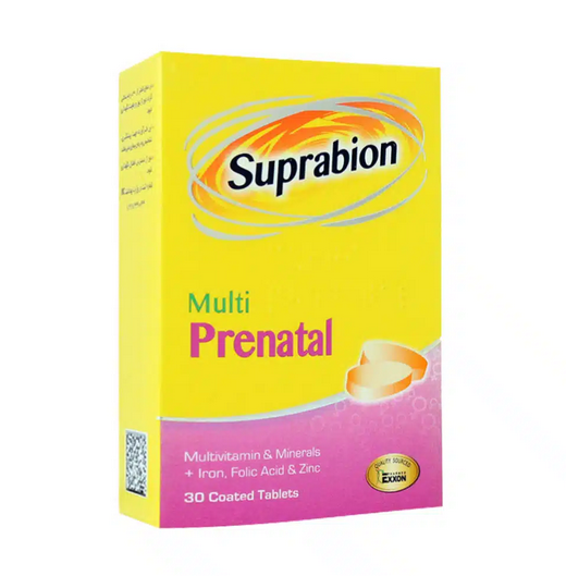قرص مولتی پریناتال سوپرابیون (suprabion multi parental tablets – 30 pcs) یک مکمل ایده آل در بارداری و شیر دهی می باشد این محصول به واسطه ترکیبات موثری که دارد موجب تامین ویتامین ها و مواد مورد نیاز بانوان در بارداری و شیر دهی می شود و موجب حفظ سلامت مادر و جنین شده و در رشد و تکامل جسمی و عصبی نوزاد نیز موثر می باشد ویتامین های گروه B موجود در این محصول موجب رشد و تکامل مغزی و سیستم عصبی جنین شده و از ابتلای جنین به نقص لوله عصبی و شکاف کام نیز جلوگیری می کند و هم چنین موجب ساخت گلبول های قرمز می شود و از سقط جنین نیز جلوگیری این ویتامین موجب کاهش تهوع و استفراغ در بارداری شده و موجب متابولیسم مواد غذایی و تولید هورمون ها می شود قرص مولتی پریناتال سوپرابیون به واسطه دارا بودن ویتامین D موجب تقویت سیستم ایمنی، تکامل مغز، حفظ سلامت استخوان ها و استحکام ناخن ها می شود و از پر فشاری خون در دوران بارداری جلوگیری می کند ویتامین E موجود در این محصول دارای خاصیت آنتی اکسیدانی بوده و موجب تقویت سیستم ایمنی و افزایش وزن جنین می شودکلسیم موجود در این محصول موجب حفظ تراکم استخوان های مادر و جلوگیری از ابتلا به پوکی استخوان در دوران شیر دهی می شود آهن موجود در این محصول از ابتلا به کم خونی در بارداری جلوگیری کرده و از زایمان زود رس، مرگ قبل از تولد، کاهش عملکرد ذهنی نوزاد و افسردگی بعد از زایمان جلوگیری می کند و به واسطه دارا بودن زینک موجب کاهش ریزش موی بانوان در دوران شیر دهی می شود.