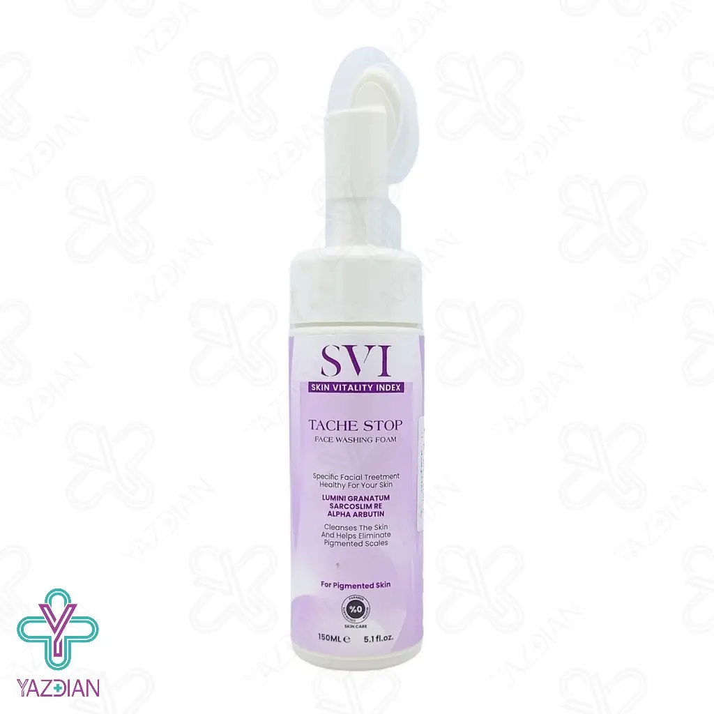 (SVI Tache Stop Face Washing Foam) با فرمولاسیون ویژه و منحصر به فردی که دارد، بطور عمقی پوست صورت را از آلودگی های محیطی، میکاپ و چربی های اضافه پاکسازی کرده و پوست را تمیز و آماده تنفس می کند. فرمولاسیون ملایم این محصول سبب شده است تا قابل استفاده برای پوست های حساس نیز باشد و خشکی و التهابات پوستی جلوگیری کند. از مهم ترین مشخصه های این محصول می توان به خاصیت از بین برندگی و محو سازی لک های تیرگی های پوست اشاره داشت. بعلاوه از بروز مجدد لک های پوستی پیشگیری کرده و به پوست ظاهری یکدست و یکنواخت می دهد. بطور کلی در صورت استفاده منظم از این محصول، شاهد بالا رفتن کیفیت پوست و کاهش هرچه بیشتر نواقص آن خواهید بود. بعلاوه خاصیت مرطوب کنندگی نیز داشته و از خشکی و دهیدراته شدن آن پیشگیری می کند.