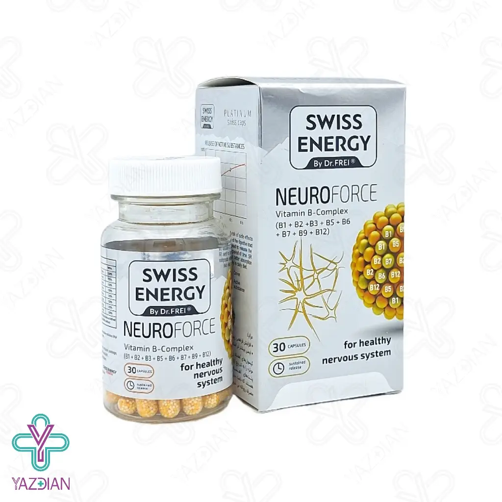 کپسول تقویت سیستم عصبی نوروفورس سوئیس انرژی (Swiss Energy Neuroforce 30 Capsules) از جمله مکمل های تخصصی است که با برخورداری از ویتامین های بکمپلکس، در تولید ناقل های شیمیایی نقش اساسی دارد و عملکرد سیستم عصبی را بهبود می بخشد. فرمولاسیون آهسته رهش این کپسول باعث شده است تا مواد موثره ی آن به تدریج وارد بدن شود و بدین صورت جذب طولانی و موثری خواهد داشت. این موضوع باعث به حداقل رسیدن عوارض جانبی و بهبود اثربخشی آن می شود.