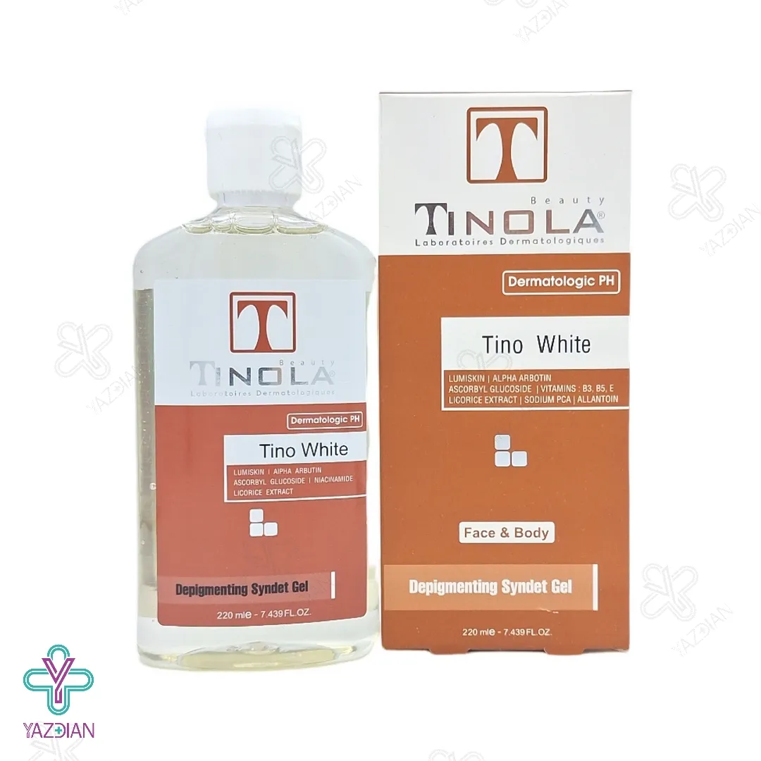 ژل شستشوی غیر صابونی روشن کننده تینولا (Tinola Skin And Body Lightening Syndet Gel 220 ml) با دارا بودن ترکیباتی مؤثر نظیر آلانتوئین، آربوتین، نیاسینامید و عصاره شیرین بیان در فرمولاسیون خود می تواند ضمن مهار آنزیم سنتز ملانین در پوست و رفع لک های پوستی، از ایجاد مجدد این لک ها در پوست ممانعت به عمل بیاورد.