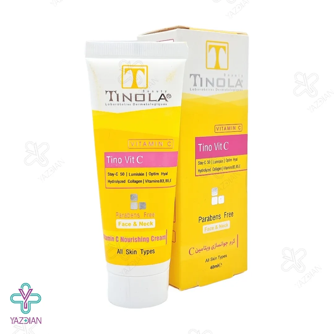 کرم مغذی و روشن کننده پوست تینولا حاوی ویتامین ث (Tinola Vitamin C Nourishing Cream 40 ml) با دارا بودن غلظت بالایی از شکل پایدار ویتامین C به همراه دیگر ترکیبات مؤثر موجود در فرمولاسیون خود، می تواند مواد مغذی مورد نیاز بافت پوست را فراهم آورده و ضمن به تأخیر انداختن روند پیری پوست، استحکام پوست را افزایش دهد. این کرم همچنین با از بین بردن لک ها و تیرگی های پوست، روشنی و شفافیت فوق العاده ای را برای پوست به ارمغان می آورد.