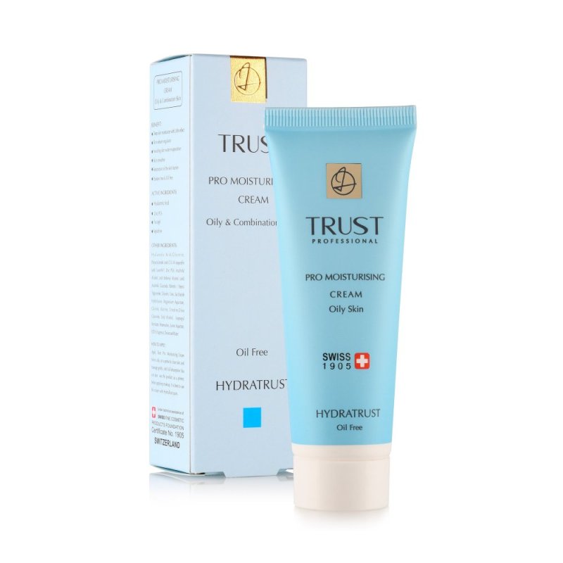کرم آبرسان پوست چرب تراست (Trust Pro misturising cream oily skin 50 ml) با آب رسانی و حفظ رطوبت در پوست، سبب به وجود آمدن نرمی و لطافت در آن می شود، از دیگر ویژگی های این محصول این است که یک پایه ی عالی برای آرایش بوده و مصرف این کرم قبل از انجام آرایش، باعث می شود تا پوست زبرتر و آماده تر شود و کمک بسیاری به ثابت ماندن آرایش می کند،این کرم مناسب استفاده برای پوست های چرب و مختلط بوده و آن را هم خانم ها و هم آقایان به صورت روزانه می توانند مصرف کنند.