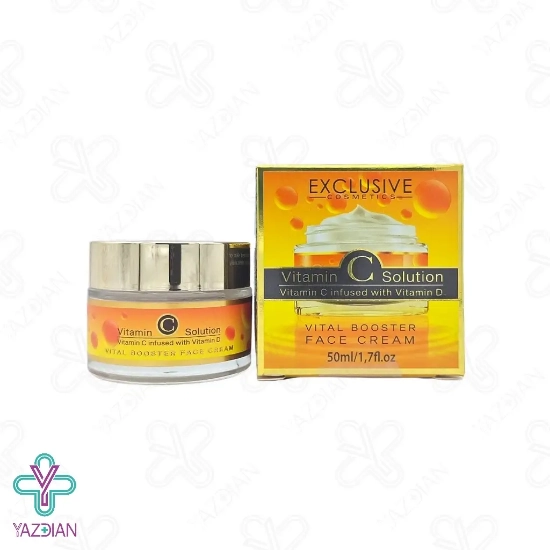 کرم روز و شب احیا کننده ویتال بوستر اکسکلوسیو (Vital booster Exclusive revitalizing day and night cream - 50 ml) دارای ترکیبات موثری است که موجب کاهش چین وچروک پوستی شده و لک پوستی را کاهش می دهد این محصول موجب شفافیت و روشن شدن پوست می شود ویتامین C موجود در این محصول موجب کاهش علائم پیری پوست شده و مانع از ایجاد چین وچروک و لک های پوستی می شود و ضمن کاهش خستگی پوست موجب رطوبت کافی در پوست شده و به شادابی و جوان سازی پوست نیز کمک می کند ویتامین D نیز در این محصول موجود می باشد که خاصیت استروئید برای پوست دارد و از پوست محافت کرده و از سرطوان پوست نیز جلوگیری می کند کرم ویتال بوستر اکسکلوسیو به واسطه ویتامین D دارای خاصیت آنتی اکسیدانی بوده و از پوست در برابر اثرات مخرب رادیکال های آزاد محافت می کند و در شادابی و جوان سازی پوست موثر می باشد و با کلاژن سازی پوست موجب کند شدن تشکیل لک شده و علائم پیری را کاهش می دهد و از پوست در برابر آفتاب سوختگی محافت کرده و موجب از بین رفتن قرمزی پوست می شود و با بافت سبکی که دارد سریع در پوست جذب شده و هیچ گونه احساس چربی و سنگینی بر روی پوست ایجاد نمی کند.