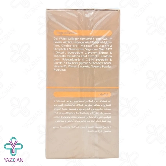 نیاسینامید، گلیسرین، آب دیونیزه، آب و الکل و فسفاتیدیل کولین هیدروژنه و کلسترول و منیزیم اسکوربیل فسفات، پلی آکریلامید و ایزوپارافین و لورث ۷، فنوکسی اتانول و اتیل هگزیل گلیسرین، بوتیلن گلایکل و آب و لورث ۳ و هیدروکسی اتیل سلولز و استیل دی پپتید ۱ ستیل استر، آب و پنتیلن گلایکل و کاپریلیل گلایکول و ان پروپیل پالمیتویل تری پپتید ۵۶ استات، عصاره لونتوپودیوم آلپینوم کالوس کالچر و زانتانگام، عصاره لیکوپودیوم کلاواتوموم و عصاره ریشه ایمپراتا سیلیندریکا، زانتان گام، بپانتین، توکوفرول استات، پودر عصاره برگ آلوورا، اسانس مجاز آرایشی و بهداشتی