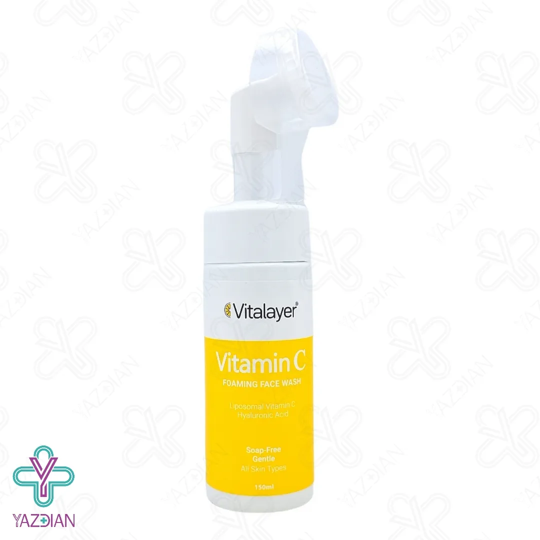 فوم شستشوی صورت ویتامین ث ویتالیر - 150 میلی لیتر (Vitalayer Vitamin C Foaming Face Wash ۱۵۰ ml) فرموله شده جهت پاکسازی پوست از آلودگی ها، چربی و مواد آرایشی می باشد. این محصول قدرت شویندگی ملایمی دارد و میزان سنتز کلاژن سازی پوست را بالا می برد و به پوست قوام و استحکام می بخشد. PH سازگار با پوست این محصول سبب شده است تا پوست واکنش نشان ندهد و باعث ایجاد آلرژی نشود. این فوم با کنترل ترشحات چربی پوست، از بروز جوش های سر سیاه و سر سفید جلوگیری می کند.