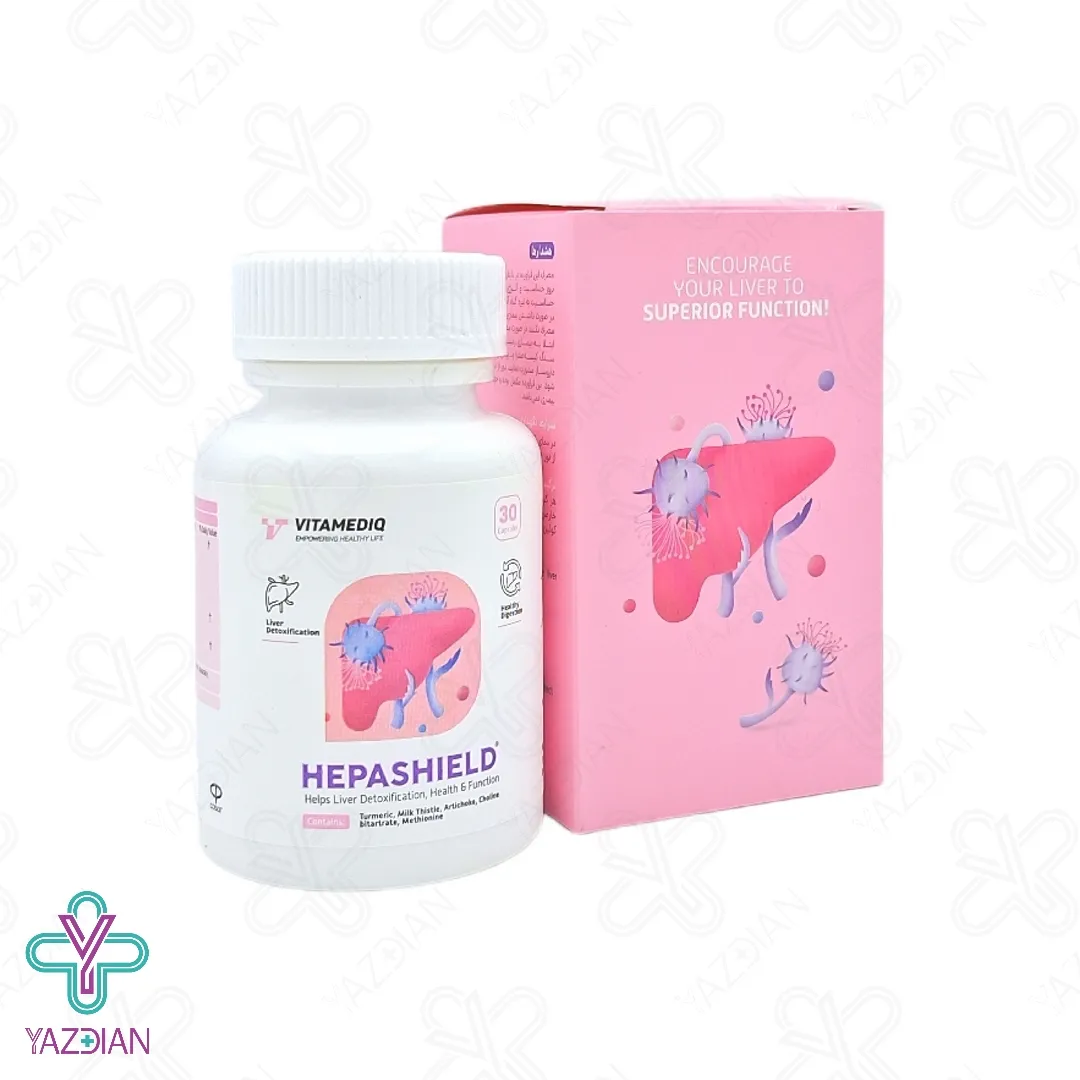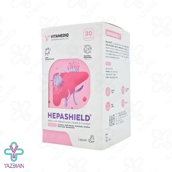 کپسول هپاشیلد ویتامدیک ( Vitamediq Hepashield ) یک محصول طبیعی می باشد که با بهره گیری از کنگر فرنگی، زردچوبه، گیاه خار مریم، اسید آمینه متیونین و ماده معدنی کولین در فرمولاسیون خود، کمک به سم زدایی از کبد می کند. جهت خرید داروی کبد چرب به سایت ما سر بزنید.