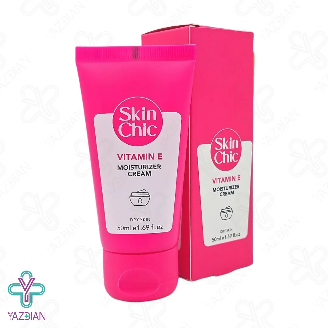 کرم مرطوب کننده ویتامین ایی اسکین شیک (Vitamin E Moisturizing cream Skin chic – 50 ml) یک گزینه مناسب برای استفاده تمام افراد با هر نوع پوستی می باشد، این محصول با بافت سبکی که دارد سریع در پوست جذب شده و به نرم و لطیف شدن آن نیز کمک می کند، کرم اسکین شیک با بهره گیری از ویتامین E سبب تقویت پوست شده و ضمن ترمیم و احیا قسمت های آسیب دیده پوست موجب کلاژن سازی در پوست نیز می شود.