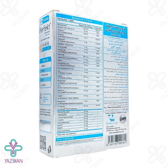 قرص پرفکت دایموند آقایان ویتان (Vitane Perfect Diamond For Men 30 Tabs) با بهره گیری از فرمولاسیون ویژه و تخصصی خود، حافظ سلامت مو در آقایان بوده و ضمن جلوگیری از ریزش آن ها، در حفظ رنگ آن ها موثر واقع می شود.