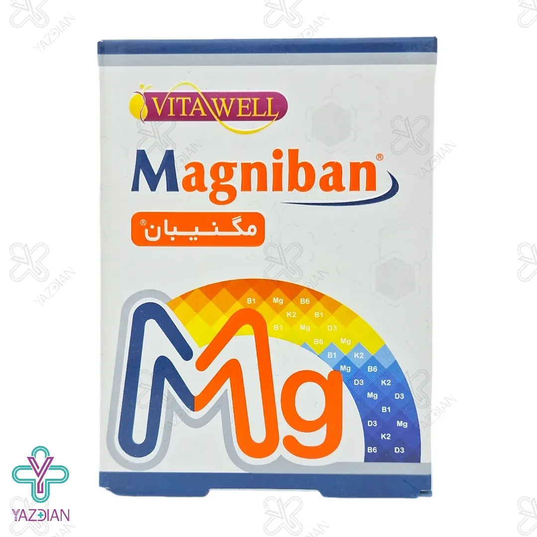 کپسول منیزیم مگنیبان ویتاول - 30 عددی (Vitawell Magniban 30 Caps) یکی از بهترین داروهای تقویتی بدن بوده و حاوی انواع ویتامین های B1,B6,D,K2 و منیزیم می باشد که در پیشگیری از گرفتگی و اسپاسم عضلانی نقش مهمی دارد. بعلاوه این کپسول در حفظ سلامت استخوان و بطور کلی سلامت عمومی بدن نقش موثری داشته و کمک به کاهش درد مفاصل و آرتروز و ترمیم غضروف های صدمه دیده می کند.