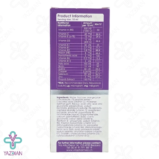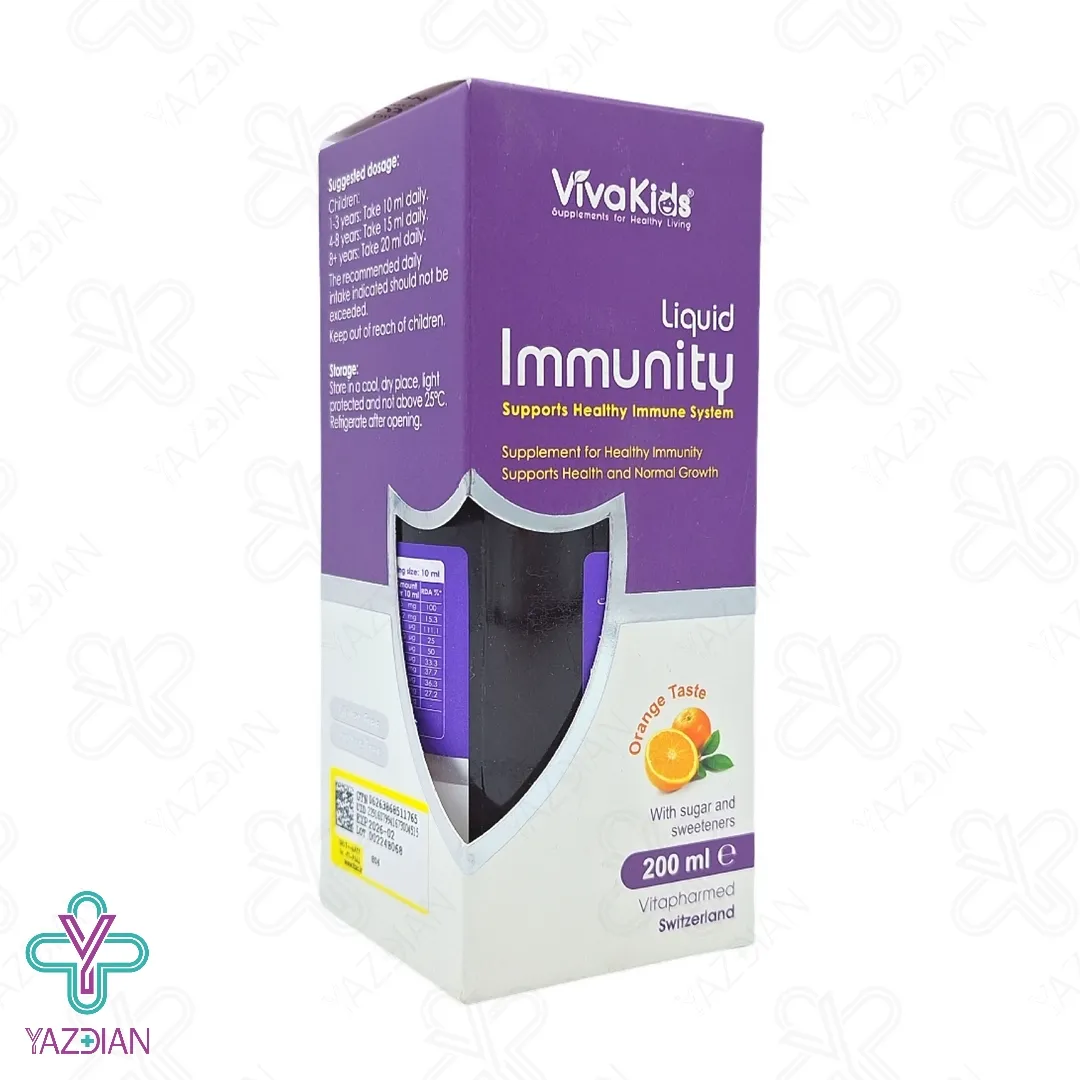 شربت تقویت سیستم ایمنی ایمیونیتی ویواکیدز - 200 میلی لیتر (Viva Kids Immunity Liquid 200 ml) یکی از بهترین دارو های تقویت بدن کودک می باشد که با برخورداری از عصاره پروپولیس، انواع ویتامین ها و عناصر کمیاب، تقویت کننده عالی سیستم ایمنی کودکان و حمایت کننده رشد و سلامت کودکان می باشد. در ترکیبات این محصول از گلوتن و لاکتوز استفاده نشده است و بدین خاطر کودکان مبتلا به سلیاک یا عدم تحمل لاکتوز نیز می توانند از آن بهره ببرند. این شربت دارای طعم مطلوب پرتقال می باشد.