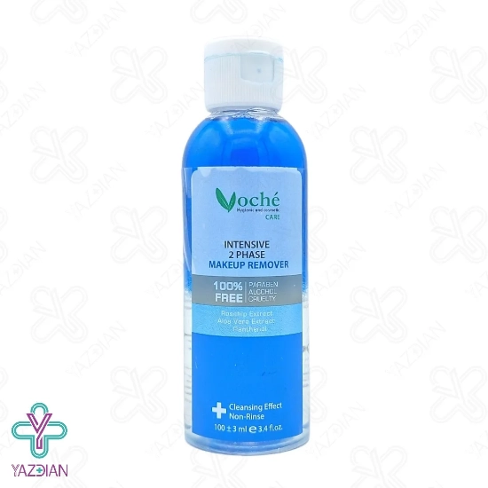 محلول پاک کننده آرایش دوفاز وچه - 100 میلی لیتر (Voche Intensive ۲ Phase Makeup Remover ۱۰۰ ml) به خوبی میکاپ صورت، چربی های اضافه و آلودگی ها را از پوست صورت پاکسازی می کند. این محصول قابلیت استفاده برای تمامی انواع پوست را دارد و هیچ حساسیتی یرای پوست ایجاد نمی کند.