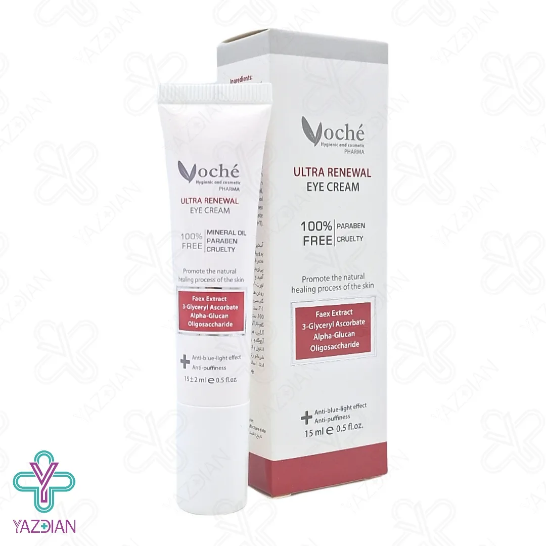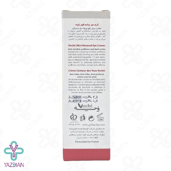 کرم دور چشم چندکاره قوی وچه - 15 میلی لیتر (Voche Tripeptide Eye Cream ۱۵ ml) با تحریک کلاژن سازی پوست، باعث تکثیر بیشتر سلول های بنیادی می شود و استحکام و قوام پوست را بالا می برد. بعلاوه قوام و استحکام پوست را بالا می برد و بدلیل بهره گیری از امگا 3 از پیری زودرس پوست جلوگیری می کند. از دیگر ترکیبات این محصول می توان به کافئین اشاره داشت که پف و تیرگی های دور چشم را برطرف می کند و پوست این ناحیه را جوان و شاداب تر می کند. این کرم فاقد مواد مضر از جمله پارابن و رنگ می باشد و ضرری برای پوست ندارد.